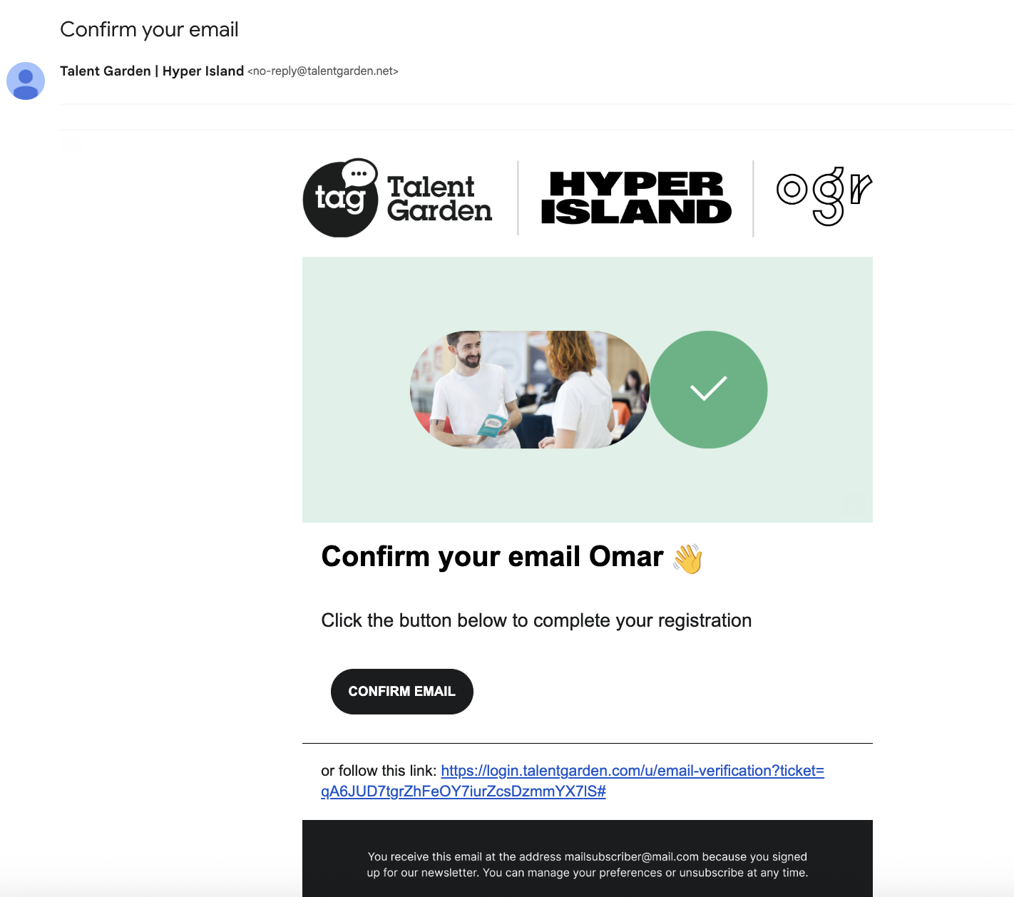 Once your company manager (owner) has invited you to join the organization on Talent Garden, you’ll receive an automatic invitation email to your business email address.
