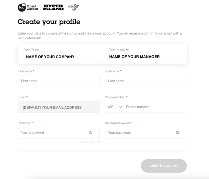 💡 Suggerimento: conserva la password, ti servirà per tutti i servizi digitali di Talent Garden.